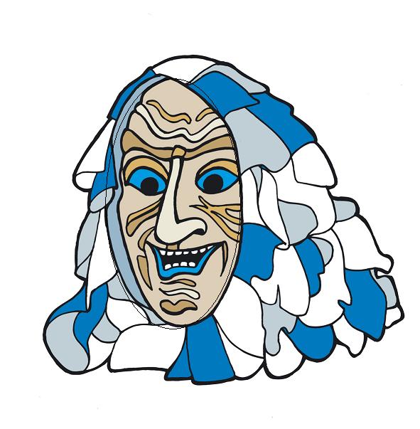 Die Hellgrauen und Dunkelgrauen Fleckle Symbolisieren das graue und Eisige Winterwetter die blauen Fleckle repräsentieren den blauen Himmel dass den Winter vertreiben soll.