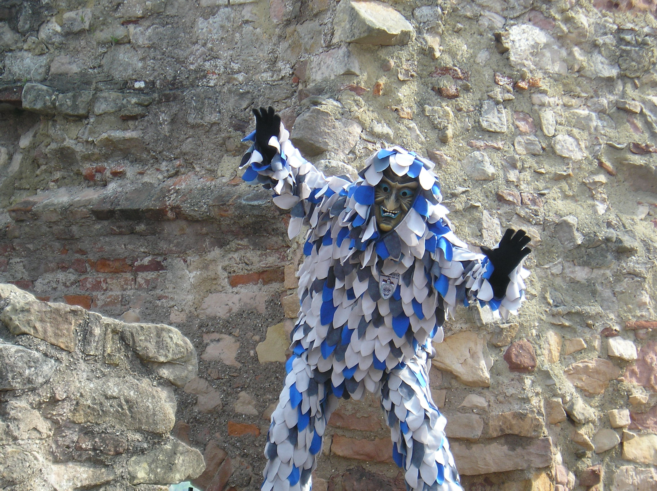 Das Häs besteht aus Hellgrauen, Dunkelgrauen und Blauen Fleckle.